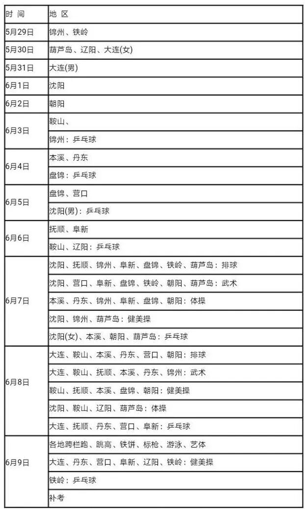 辽宁省2020年普通高校体育专业省统一考试日程安排