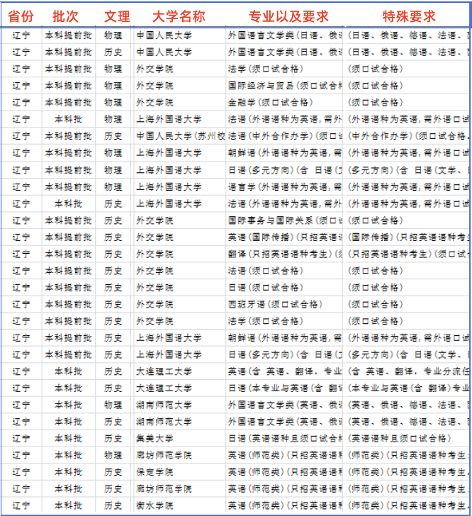 辽宁省高考报名需要口语考试合格的大学和专业: