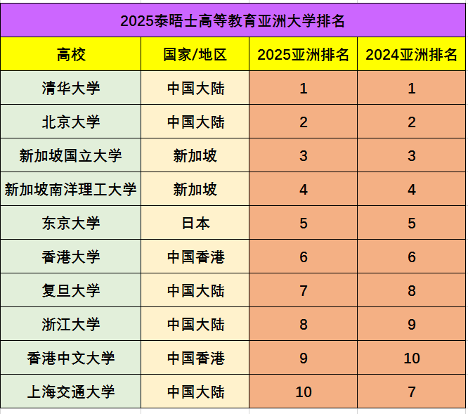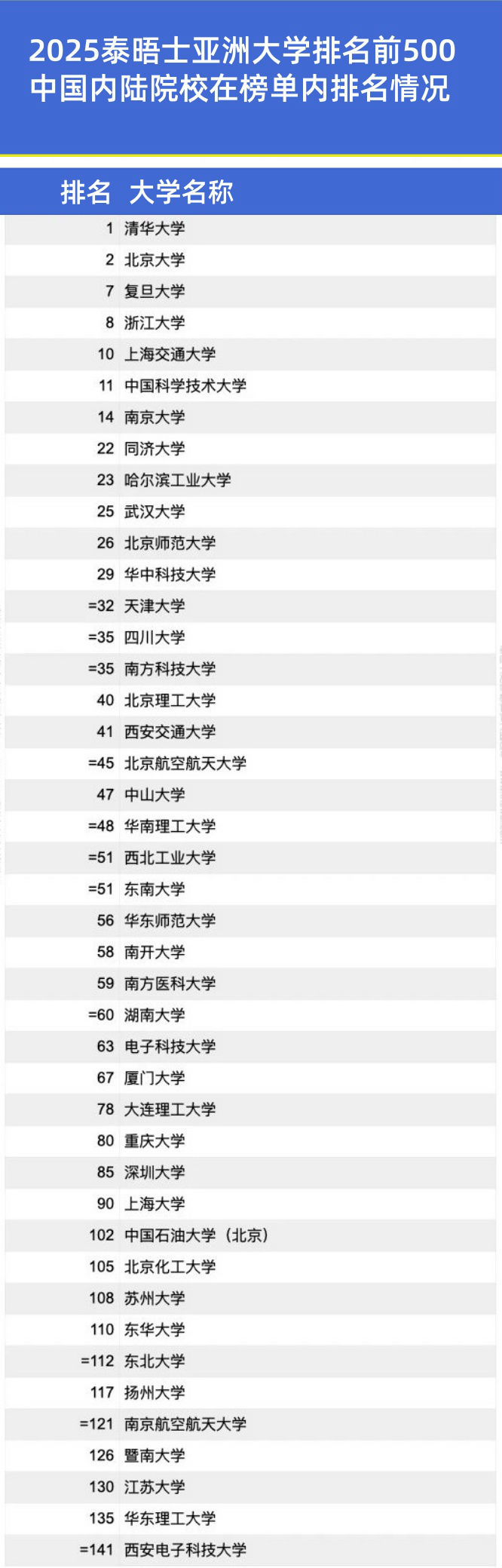 中国在2025年度泰晤士高等教育亚洲大学排名中的卓越表现,反应了中国在经济、科研、军事、教育文化等方面取得了全方位的成功!作为国人,必须为祖国的日益强大感到骄傲!