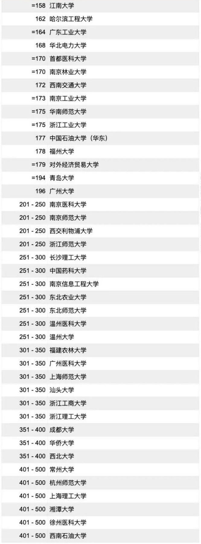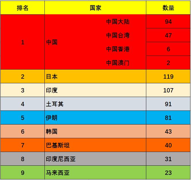 本次排名按照国家划分,中国以149所(包含港澳台)排名第一,日本119所,印度107排在二三名。
