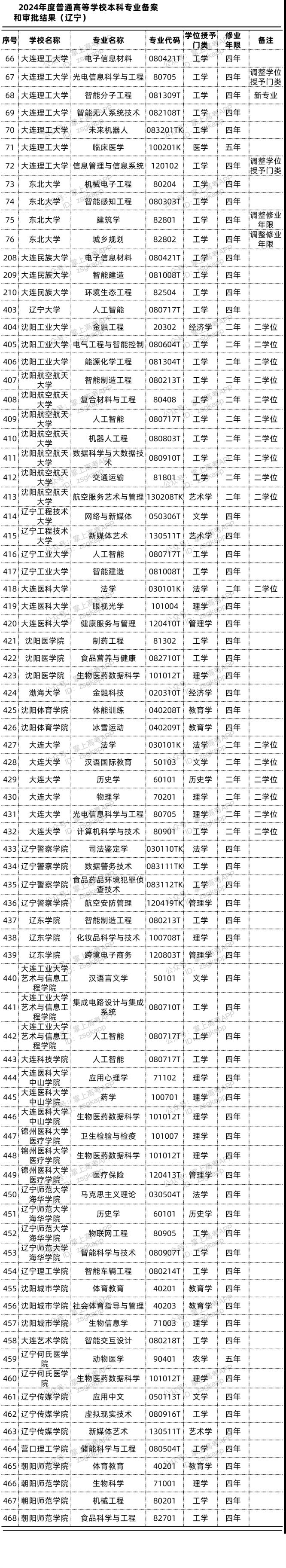 沈阳医学院、大连医科大学中山学院、锦州医科大学医疗学院、辽宁何氏医学院4所院校新增生物医药数据科学专业。大连理工大学、大连民族大学新增电子信息材料专业。沈阳城市学院、朝阳师范学院新增体育教育专业。辽宁工程技术大学、辽宁传媒学院新增新媒体艺术专业。大连民族大学、辽宁工业大学新增智能建造专业。